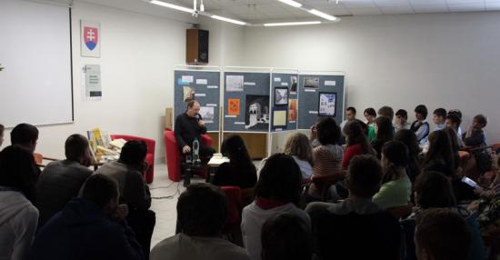 Daniel Hevier v knižnici